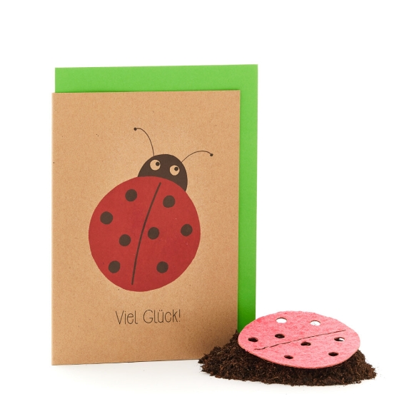 Grußkarte "Viel Glück" | Klappkarte mit Marienkäfer | Karte Viel Glück und Erfolg für Prüfung I mit Saatpapier