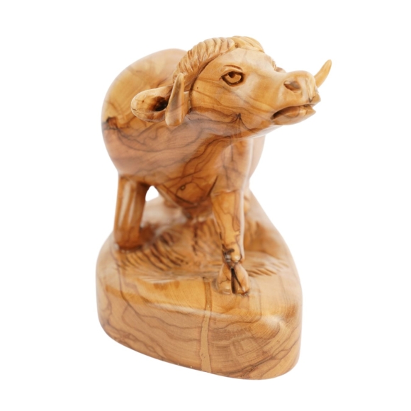 Handgeschnitzter Ochse aus Olivenholz – Exklusive Holzskulptur aus Bethlehem (18 cm)