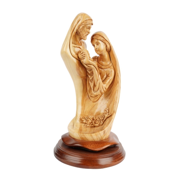 Heilige Familie mit Jesuskind – Handgeschnitzte Olivenholzskulptur aus Bethlehem (28 cm)