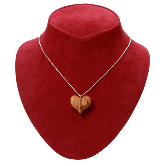 Olivenholz Herz mit silberner Halskette