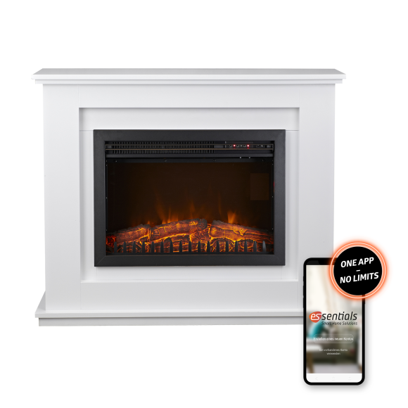 essentials Smart Home weißer Elektrokamin mit Heizfunktion und 3D-Flammeneffekt – elektrischer Kaminofen per App, Sprachsteuerung & Fernbedienung steuerb
