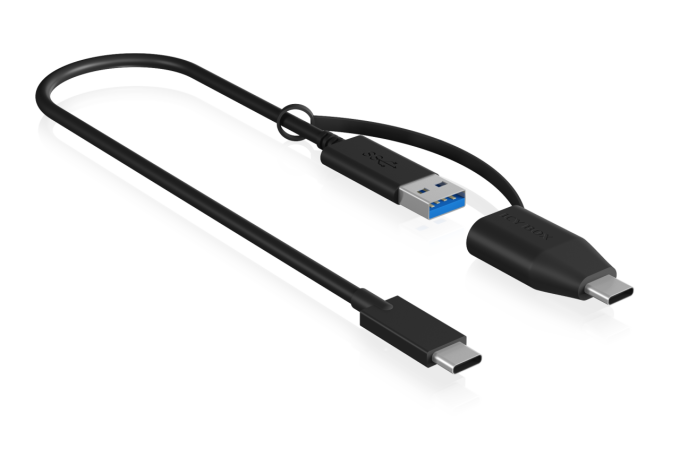 IB-CB033, USB-C zu USB-A Kabel + USB-A to USB-C Adapter, 35 cm, USB 3.2 (Gen 2) 10 Gbit/s, schwarz
