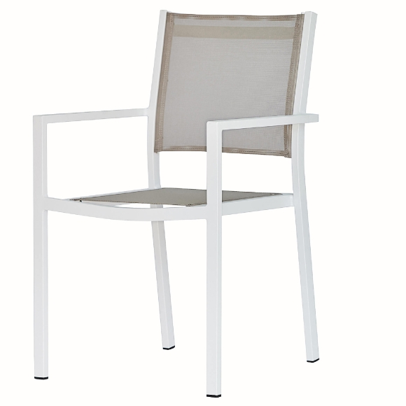 Jan Kurtz - Stapelsessel Aria Aluminium und Textilene Weiß / Taupe