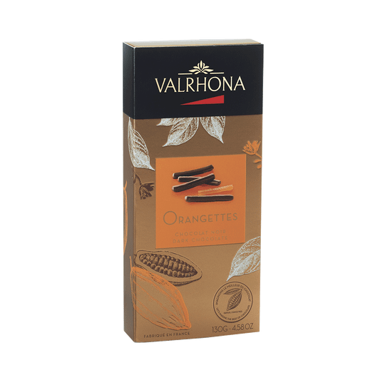 Hier wurden feine Streifen kandierter Orangenschalen mit einer dünnen, knusprigen dunklen Schokoladenschicht überzogen. Die »Orangettes« von Valrhona schmecken leicht säuerlich, fruchtig mit typischer herb-lieblicher Schokoladennote - für alle Fans von Frucht und Kakao und alle, die es nicht allzu süß mögen. Die kleinen Sticks sind als Abschluss nach dem Essen, zum Tee am Nachmittag oder als Snack zwischendurch ein wahrer Genuss. Kakaobohnen: Mixed Origin. Die französische Chocolaterie Valrhona legt viel Wert auf eine faire, nachhaltige Kakaobranche, transparente Prozesse, Umweltengagement und höchste Qualität und brachte in ihrer Geschichte schon einige süße Legenden hervor.