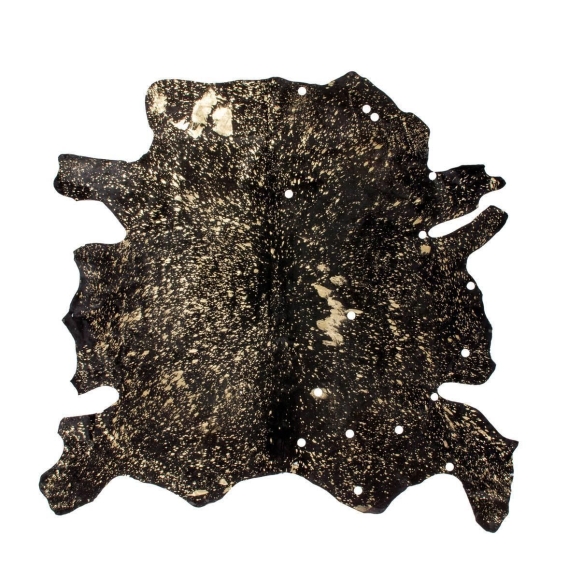 **Farbiger Lederteppich mit Gold- oder Silberakzenten**Das Design dieses Lederteppichs zeichnet sich durch das echte gefärbte Leder, edle Akzente aus Gold oder Silber, ansehnliche Ausstanzungen und die natürliche Form aus. In Räumen mit minimalistischer, schlichter Einrichtung und in Kombination mit Holz oder anderem Naturmaterial macht der Lederteppich besonders viel her. Durch die aufgedruckten Folienelemente in Gold oder Silber vermittelt das Kuhfell Luxus und Eleganz. Schaffen Sie eine gemütliche und edle Atmosphäre in Ihrem Zuhause, indem Sie den Kuhfellteppich als Bodenbelag, Sitzauflage oder Wandteppich nutzen. Auch in Räumen, die mit einer Fußbodenheizung ausgestattet sind, kann der gemütliche Bodenbelag genutzt werden. Erhöhen Sie den Kuschelfaktor zusätzlich, indem Sie Kissen, Sitzkissen und Decken in Teppichnähe platzieren. Der Teppich besteht zu 100 % aus echtem, hochwertigen Rindsleder, ist besonders pflegeleicht und durch einfaches Absaugen, Ausklopfen oder feuchtes Abwischen problemlos zu reinigen. Der leichte und flache attraktive Lederteppich schont Ihren Fußboden und verleiht dem Raum durch seine Exklusivität und seine Natürlichkeit einen edlen Touch.Bei echtem Rindslederfell handelt es sich um ein Naturprodukt, sodass es in Farbe und Beschaffenheit des Fells zu Abweichungen kommen kann. Dadurch ist jeder Teppich ein einzigartiges Unikat, da keine zwei Felle identisch sind.