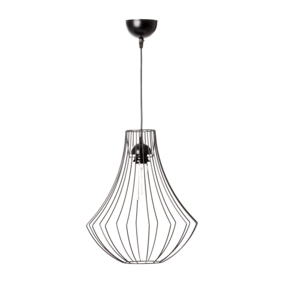 **Stilvolle Deckenlampe in minimalistischem Design**Wenn Sie in Ihrer Umgebung neue Akzente setzen möchten, dann sind Sie mit dieser Deckenlampe gut beraten. Die Lampe gibt sich in industriellem, minimalistisch gehaltenen Design. Das Gestell des Lampenschirms aus beschichtetem Draht wurde stilvoll in Form gebracht. Gleichmäßige Abstände zwischen den einzelnen Drahtsträngen sorgen für ein harmonisches Gesamtbild und integrieren die ansonsten schlichte Lampe optimal in Ihre Wohneinrichtung. Durch den außergewöhnlichen Lampenschirm ergeben sich bei eingeschaltetem Licht tolle Strahleneffekte, die dem Raum eine bezaubernde Atmosphäre verleihen. Doch egal ob die schwarze Lampe ein- oder ausgeschaltet ist – sie ist jederzeit dekorativ und trendig. Die Deckenlampe ist in verschiedenen dezenten Farben, wie Schwarz, Weiß, Gold oder Silber, sowie unter anderen Namen in verschiedenen attraktiven und zum Teil außergewöhnlichen Formen erhältlich. Jede Form hat dabei ihren ganz eigenen Charakter, der sich auch auf den Raum überträgt. In unserem Sortiment ist für jeden Geschmack und jeden Anspruch die passende Form dabei. Ob flach mit einer geringen Höhe von ca. 25 cm oder länglich und schmal mit ca. 60 cm Höhe für höhere Räume – schauen Sie sich unsere verschiedenen Hängelampen der Serie an. Metallteile zur Aufhängung und ein farblich passendes Kunststoffkabel von ca. 80 cm Länge komplettieren das Produkt. Bestellen Sie Ihre Lieblingsvariante als Einzelstück oder auch eine Kombination verschiedener Varianten. Entwickeln Sie mit diesen Lampen eine individuelle Raumbeleuchtungs-Komposition, die Ihr persönliches Einrichtungs-Konzept hervorragend ergänzt. Setzen Sie zum Beispiel Ihre Bilder und Gemälde mit der attraktiven Lampe gekonnt in Szene oder machen Sie es sich im Schein der Lampe auf einem bequemen Sitzkissen gemütlich.Der Lampenschirm ist unten geöffnet, sodass Leuchtmittel ganz einfach getauscht werden können. Benötigt werden E27-Leuchtmittel mit max. 40 Watt, die im Lieferumfang nicht enthalten sind.