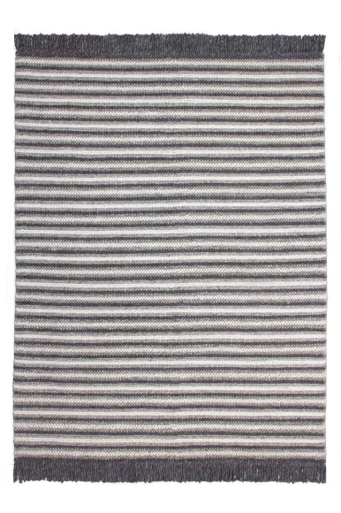 **Handgewebter Fransenteppich**Dieser Teppich passt in jede Einrichtung! Die dezent gehaltenen Naturtöne des flachgewebten Teppichs integrieren sich ideal in jeden Wohnstil, egal ob modern, rustikal oder besonders ausgefallen. Durch die langen grauen Fransen wird das attraktive Streifenmuster in harmonischen Farbtönen aus Natur und Grau komplettiert. Die auflockernden Fransen sorgen gleichzeitig für eine gemütliche Atmosphäre in der Umgebung. Die weiche Haptik aus 75 % Neuseeland-Wolle und 25 % Viskose ist auch barfuß sehr angenehm und zudem robust und pflegeleicht. Der Baumwollrücken verstärkt den Teppich. Mit dem Flachflorteppich mit Fransen erhalten Sie ein einzigartiges Unikat, denn bei Naturprodukten kann es material- und handarbeitsbedingt zu bis zu 30 % Abweichung vom Bild in Farbe und Form kommen. Dieser Fransenteppich ist genau die richtige Wahl für Naturverbundene und Liebhaber von klassischen und dezenten Designs. Damit für jeden Raum die passende Variante vorhanden ist, ist der Teppich in verschiedenen Größen bestellbar. Auch weitere Farben sind bei uns im Shop erhältlich.