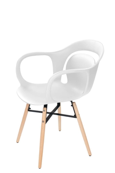 **Moderner Stuhl aus pflegeleichtem Material**Holen Sie sich diesen Blickfang in Ihr Zuhause. Die Kombination aus der auffälligen Form und dem Materialmix aus Polypropylen, Buchenholz und Metall verspricht einen modernen Einrichtungsgegenstand, der ein absoluter Hingucker ist. Die schlichte Farbe ist dezent und kann mit jedem vorherrschenden Einrichtungsstil ideal kombiniert werden. Besonders gut kann das Modell in der Küche oder im Esszimmer verwendet werden, denn das Polypropylen-Material der Sitzfläche ist äußerst robust, pflegeleicht und strapazierfähig. Auch helle Varianten behalten durch die einfache Reinigung lange ihre Farbe bei. Die Sitzfläche wird durch Rückenlehnen und Armlehnen ergänzt, sodass sich der Stuhl auch in Sachen Komfort sehen lassen kann. Mit einem weichen Kissen können Sie für zusätzlichen Komfort sorgen. Egal, ob Sie den Stuhl einzeln, paar- oder gruppenweise platzieren, er macht in jedem Wohnraum eine gute Figur und wird schnell zum Blickfang.
