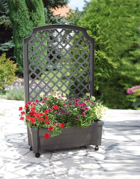 KHW Calypso Pflanzkasten auf Rollen mit Bewässerungssystem + Spalier, anthrazit