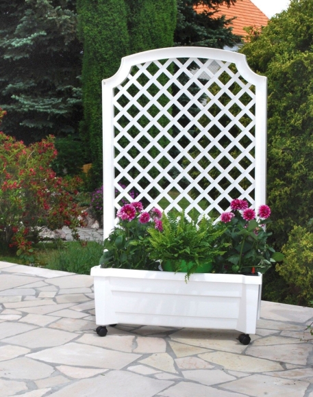 KHW Calypso Pflanzkasten auf Rollen mit Bewässerungssystem + Spalier, weiß