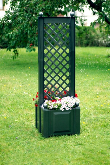 KHW Pflanzkasten mit Zentral-Spalier, Abmessungen 43x43xH140 cm.Für die beidseitigen Bepflanzung mit Kübelpflanzen bzw. Rankpflanzen.Stabil und pflegeleicht.Einfache Montage ohne zusätzliches Werkzeug – nur durch Zusammenstecken der einzelnen Teile.