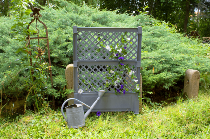 Spalier aus Vollkunststoff, beidseitig bepflanzbar, schützt Sie vor neugierigen Blicken in Ihrem Garten oder an der Terrasse. Abmessungen aufgebaut B 100 x T 6 x H 140 cm. Hergestellt aus 100 % Kunststoff, pflegeleicht und UV-stabil. Einfache Montage ohne zusätzliches Werkzeug – nur durch Zusammenstecken der einzelnen Teile.