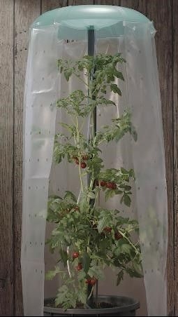 MobilesGewächshaus für Balkon, Terrasse und Kleingarten.DerTomatenhut schirmt die Tomatenpflanzen (oder Paprika o. ä.) vor Niederschlägenwie Regen und Graupeln ab, hält sie trocken und bewässert sie aber gleichzeitigbei Regen.Dermitgelieferte Schlauch wird an der Unterseite des Tomatenhutes befestigt undführt so das gesammelte Regenwasser auf das Erdreich ab, ohne dass die Blätterder Pflanze nass werden. Die Gefahr der Braunfäule wird somit gemindert.DerTomatenhut selbst ist aus 100 % Polypropylen hergestellt.Durchden Schutz der Folie können die Tomatenpflanzen schonfrühzeitig in den Garten gesetzt und bis zum Herbst können frische Tomatengeerntet werden. Bei schönem Wetter kann man die Folie geöffnet lassen, beischlechtem sollte sie geschlossen bleiben.InklusivStab.Abmessungen:Tomatenhut Ø 49 x H 7 cm, Folie: 120 x 150 cm, Rohr: Ø 2,4 x 120 cm.