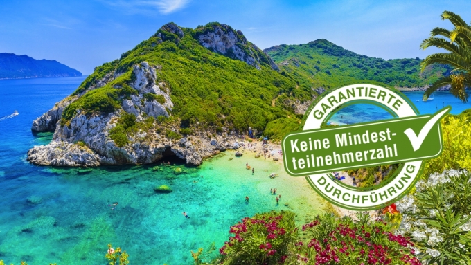 Willkommen in Griechenland! Ihre nächste Traumreise geht nämlich nach Korfu, das grüne Paradies Griechenlands. Hier erwarten Sie landschaftliche Kulissen, die einem Gemälde entsprungen sein könnten. Endlos lange Sonnenstrände, zerklüftete Buchten und tiefblaues Wasser – egal wohin Sie gehen, Sie werden von malerischen Szenerien umgeben. Lassen Sie an den wohl schönsten Orten die Seele baumeln und lernen Sie die grüne Insel kennen und lieben. Erleben Sie das Inselparadies Korfu Wussten Sie schon, dass die Insel ein eigenes Mikroklima besitzt und dass hier über dreißig verschiedene Orchideenarten wachsen? Nicht umsonst wird Korfu auch das "grüne Herz Griechenlands" genannt. Geschmückt von Olivenhainen, Zitrusbäumen, Akazien sowie den charakteristischen Zwergorangenbäumen (Kumquat) fasziniert die Mittelmeerinsel mit einer besonders üppigen Vegetation. Naturliebhaber können nach Belieben die hübschen Ortschaften auf Wander- oder Radwegen erkunden. Auch die Strände begeistern jeden Urlauber. Hier wechseln sich Sand- und Kiesstrände mit einzigartigen Badebuchten ab. Unternehmen Sie ausgedehnte Strandspaziergänge oder baden Sie im kühlen Nass und lassen Sie alles hinter sich. Als Ausflugsziel empfehlen wir Ihnen Kerkyra (Korfu-Stadt). Die wohl schönste Inselmetropole des Mittelmeers birgt beeindruckende Bauwerke wie die beiden eindrucksvollen Festungen und mittelalterliche Burgen. Darüber hinaus ist Kerkyra mit charmanten Märkten, modernen Cafés und urigen Stuben geziert. Schlendern Sie ganz nach Belieben durch die zauberhaften Straßen, entdecken Sie Ihren Lieblingsort und spüren Sie das einzigartige Flair der Stadt. Unterwegs auf Erlebnistour Während Ihrer Reise kommen Sie neben einer tollen Auszeit auf der Insel auch in den Genuss von zwei spannenden Ausflügen. Sie erleben eine Panoramafahrt durch Südkorfu, besuchen Korfu-Stadt und nehmen an einer Olivenölverkostung teil. Zusätzlich dürfen Sie sich auf eine Minikreuzfahrt freuen, die Sie vorbeiführt an geheimnisvollen Grotten zu den unvergleichlich schönen Inseln Paxos und Antipaxos. In Gaios auf Paxos genießen Sie zudem Freizeit für eigene Erkundungen. Halten Sie Ihre Kamera bereit und füllen Sie Ihr zukünftiges Urlaubsalbum mit einmaligen Momenten. Buchen Sie optional  den Ausflug "Korfu-Stadt Tour mit dem Boot" hinzu Eine Bootstour entlang der malerischen Nordostküste Korfus führt Sie zur Insel Vido und in die historische Korfu-Stadt. Bei günstigen Wetterbedingungen können Sie auf dem Rückweg noch einen Badestopp einlegen. Jetzt buchen und eine unvergessliche Zeit auf Korfu erleben!