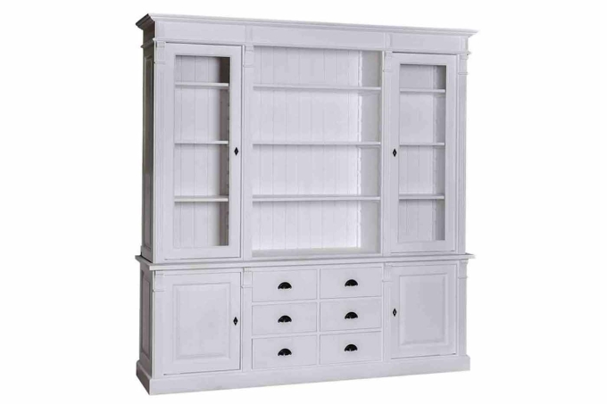Feeling4Home - Vitrine Landhaus aus Kiefernholz 2 Glastüren 2 Türen 6 Schubladen