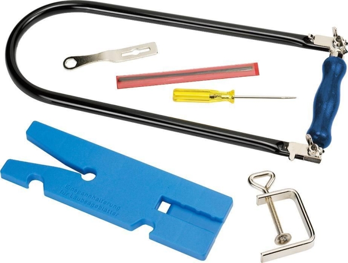 kwb Laubsägegarnitur, 7-teiligIdeales Set für alle Laubsägearbeiten und ist besonder zum Sägen von Vollholz geeignet.Es können Sperrholzplatten, Weichholz, Kunststoffplatten, mit dem entsprechenden Sägeblatt können gerade und kurvige Schnitte gesägt werden.