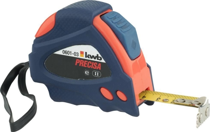 kwb PRECISA Stahlbandmaß 2 MStahlbandmaß, bombiert (gewölbtes Bandmaß), gehärtet, mit Spezialhaken für Innen- und Außenmessung.Haken mit starken Magneten bestückt, automatischer Rücklauf nach Bandfreigabe, durch ABS Kunststoffgehäuse bruchfest. Automatische Bandarretierung, mit EG-Bauartzulassung, Genauigkeitsklasse II.