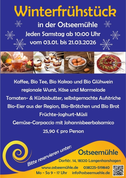 Wir freuen uns, wenn Sie vorab unter 038225-519840 oder online reservieren und uns Ihre Wünsche mitteilen.