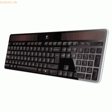 Solarbetriebene kabellose Tastatur mit elegantem Design und ultraflachem Profil mit nur 7,5 Millimetern, wiederaufladbarem Akku mit bis zu vier Monaten Laufzeit mit einer Vollladung; konkav geformten Logitech Incurve-Tasten für einen flüsterleisen Tippkomfort; Logitech Advanced 2,4-GHz-Technologie mit sicherer 128-Bit-AES-Tastaturverschlüsselung und bis zu 10 Metern Reichweite; winzigem Unifying-USB-Empfänger; Kompatibel mit Windows 98, 2000, ME, XP, Vista und Windows 7;