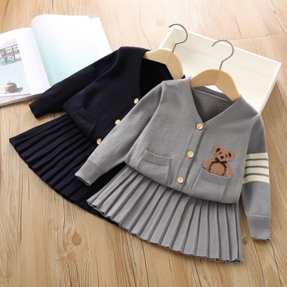 M?dchen-Pullover-Set, koreanische Version des Preppy-Stils, zweiteiliges Set mit Strickrock f¨¹r kleine M?dchen