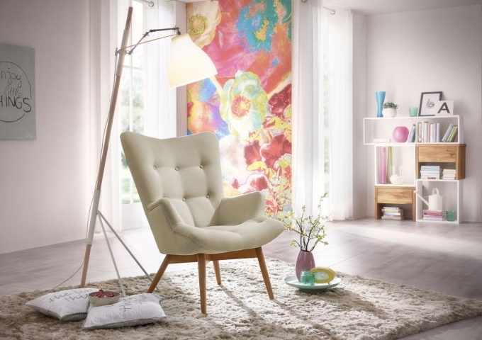 Unser Retrosessel Aiko ist ein stylischer Hochlehnsessel. Die Zierknöpfe der Rückenlehne verleihen dem Sessel Struktur und zusätzlich Eleganz. Die stylischen Füße sind aus massiver Buche und unterstreichen das wertige Design.·74x81x98 in cm (BxTxH)·Nettogewicht 14 kg·Flachgewebe (Leinenoptik)·100% Polyester·Sitzhärte fest·Anzahl Sitze 1 ·stabile Auflageplatte, Polyätherschaum, Diolenabdeckung·Fußfarbe Buche natur·stabiles Holzgrundgestell aus Massivholz und Holzwerkstoffen·Bodenfreiheit 30 cm·Armteilhöhe innen vorn/hinten 22 cm·Höhe ohne Füße 68 cm·Rückenhöhe innen 57 cm·Sitzbreite vorn/hinten44 / 34 cm·Sitztiefe 43 cm·Sitzhöhe 42 cm