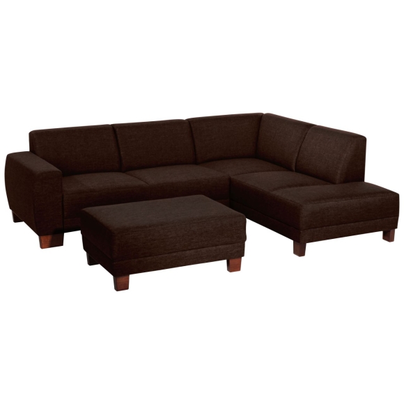Modernes, geradliniges Ecksofa mit offenem Abschluss. Ein Klassiker in zeitlos moderner Formensprache. Der niedrige, leicht gewölbte Rücken macht dieses Sofa zur perfekten Loungegarnitur.  Der Bezug aus Flachgewebe in moderner Leinenstruktur mit angenehmen Griff und die massiven Buchefüße in dunklem Nussbaumfarbton komplettieren das Gesamtbild. Der Rücken ist ebenfalls im Originalstoff bezogen, damit ist die Polsterecke frei im Raum stellbar. ·248x188x75 in cm (BxTxH) ·Nettogewicht 37 kg ·Flachgewebe (Leinenoptik) ·100 % Polyester ·Sitzhärte mittel ·Anzahl Sitze 6 cm ·Wellenunterfederung, Polyätherschaum mit Diolenabdeckung ·Fußfarbe Buche nussbaum dunkel ·stabiles Holzgrundgestell aus Massivholz und Holzwerkstoffen ·Bodenfreiheit 10 cm ·Armteilhöhe innen vorn/hinten 17 cm ·Höhe ohne Füße 68 cm ·Rückenhöhe innen 41 cm ·Sitzbreite vorn/hinten cm ·Sitztiefe 60 cm ·Sitzhöhe 42 cm