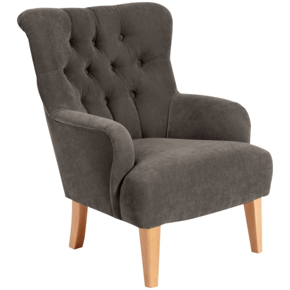 Eleganter Sessel im Chesterfield Stil. Der extravagante Rücken mit aufwändiger Rautenheftung macht ihn zu einem besonderen Hingucker. Die aufwändig gestalteten Armteile unterstreichen die wertige Optik. Die Füße sind zur einfachen Selbstmontage.·71x82x97 in cm (BxTxH)·Nettogewicht 18 kg·Veloursstoff·100% Polyester·Sitzhärte mittel·Anzahl Sitze 1 ·Wellenunterfederung, Polyätherschaum, Diolenabdeckung·Fußfarbe Buche natur·stabiles Holzgrundgestell aus Massivholz und Holzwerkstoffen·Bodenfreiheit 24 cm·Armteilhöhe innen vorn/hinten 18 cm·Höhe ohne Füße 68 cm·Rückenhöhe innen 57 cm·Sitzbreite vorn/hinten45 cm·Sitztiefe 53 cm·Sitzhöhe 44 cm