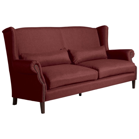 Gemütliches Sofa im Ohrenbackenstil mit vielen aufwendigen Details. Die elegant geschwungenen Armlehnen verfügen über ein dekoratives Ziernagelband. Die losen Sitzkissen mit weicher Schaumstoffflockenfüllung sind mit einem Klettverschluss am Korpus befestigt. Die mitgelieferten Zierkissen sorgen für zusätzlichen Sitzkomfort und unterstreichen die behagliche Optik. Flora ist als 2-Sitzer und 3-Sitzer erhältlich und kann auch um einen passenden Einzelsessel ergänzt werden. ·234x94x112 in cm (BxTxH) ·Nettogewicht 69 kg ·Flachgewebe ·100% Polyester ·Sitzhärte weich ·Anzahl Sitze 3 ·Gurtunterfederung, Polyätherschaum, Diolenabdeckung, lose Sitzkissen mit Schaumstoffflocken-Füllung, mit Klettverschluss am Korpus befestigt ·Fußfarbe Buche nussbaum dunkel ·stabiles Holzgrundgestell aus Massivholz und Holzwerkstoffen ·Bodenfreiheit 15/12 cm ·Armteilhöhe innen vorn/hinten 16 cm ·Höhe ohne Füße 68 cm ·Rückenhöhe innen 61 cm ·Sitzbreite vorn/hinten192 cm ·Sitztiefe 49 cm ·Sitzhöhe 50 cm