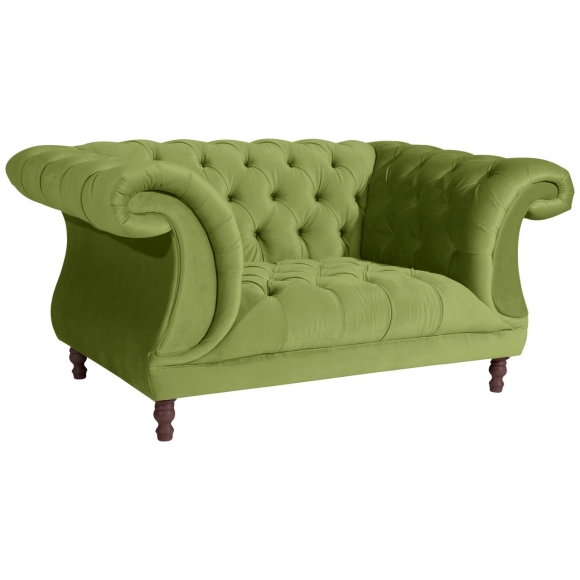 Stilvoll präsentiert sich dieser Sessel. Der hohe Rücken und die darin übergehenden Armlehnen wirken majestätisch und verleihen Ihrem Wohnraum ein königliches Ambiente. Mit handwerklicher Wertarbeit wurde die aufwändige Knopfheftung im Rücken, den Armlehnen und auf der Sitzfläche gefertigt. Der Bezugstoff ist ein weiches Samtveloursgewebe. Abgerundet wird der Sessel durch kunstvoll gedrechselte nussbaumfarbe Buchefüße. Die Füße sind zur einfachen Selbstmontage. ·167x100x80 in cm (BxTxH) ·Nettogewicht 51 kg ·Samtvelours ·100% Polyester ·Sitzhärte mittel ·Anzahl Sitze 1 ·Wellenunterfederung, Polyätherschaum, Diolenabdeckung ·Fußfarbe Buche nussbaum dunkel ·stabiles Holzgrundgestell aus Massivholz und Holzwerkstoffen ·Bodenfreiheit 14 cm ·Armteilhöhe innen vorn/hinten 39 cm ·Höhe ohne Füße 68 cm ·Rückenhöhe innen 40 cm ·Sitzbreite vorn/hinten80 cm ·Sitztiefe 64 cm ·Sitzhöhe 44 cm