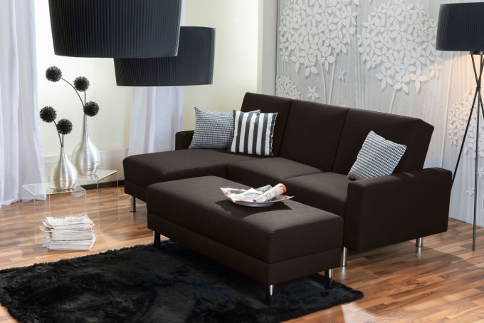 Moderne Longchair-Garnitur in schlichtem, zeitlosen Design. Der Longchair ist wahlweise rechts oder links montierbar. Damit passt sich die Garnitur Ihrer individuellen Wohnsituation an. Die Rückenlehne ist 5-fach verstellbar. Für optimalen Sitzkomfort sorgt ein schaumummantelter Federkern in der Sitzfläche. Der mitgelieferte Stauraumhocker ergänzt die Garnitur perfekt und lässt sich am Sofa fixieren. In Verbindung mit der zurückgeklappten Rückenlehne entsteht so eine große Liegefläche von ca. 170 x 200 cm. Die verchromten Metallfüße unterstreichen den modernen Look. ·230x152x93 in cm (BxTxH) ·Nettogewicht 56 kg ·Flachgewebe ·100% Polyester ·Sitzhärte mittel ·Anzahl Sitze 6 cm ·Wellenunterfederung, schaumummantelter Einzelfederkern, Polyätherschaum, Diolenabdeckung ·Fußfarbe Metall chromfarben ·stabiles Holzgrundgestell aus Massivholz und Holzwerkstoffen ·Bodenfreiheit 14 cm ·Armteilhöhe innen vorn/hinten 17 cm ·Höhe ohne Füße 68 cm ·Rückenhöhe innen 47 cm ·Sitzbreite vorn/hinten65 / 135 cm ·Sitztiefe 50 / LC 110 cm ·Sitzhöhe 47 cm