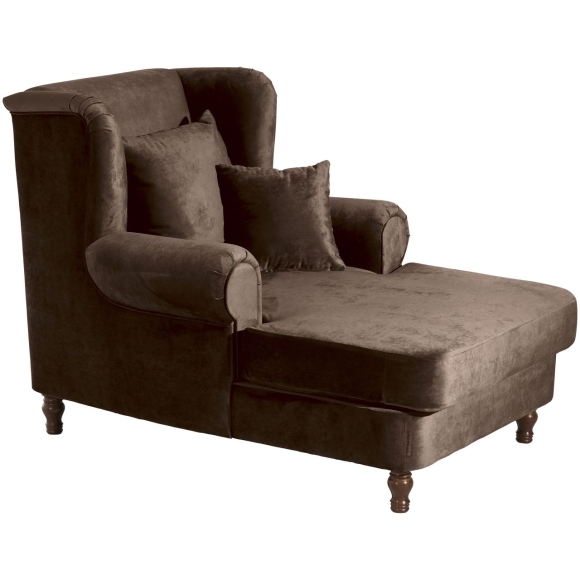 Megasessel mit integriertem Longchair im klassischen Ohrenbackenstil. Die Lieferung erfolgt inkl. 2 Zierkissen (55 x 55 cm und 40 x 40 cm). Außergewöhnlicher Blickfang für Ihr Wohnzimmer. Die gedrechselten Holzfüße runden das Gesamtbild ab. Die Füße sind zur einfachen Selbstmontage. ·103x149x103 in cm (BxTxH) ·Nettogewicht 54 kg ·Samtvelours ·100% Polyester ·Sitzhärte mittel ·Anzahl Sitze 2 ·Gurtunterfederung, Polyätherschaum, Diolenabdeckung ·Fußfarbe Buche nussbaum dunkel ·stabiles Holzgrundgestell aus Massivholz und Holzwerkstoffen ·Bodenfreiheit 14 cm ·Armteilhöhe innen vorn/hinten 20 cm ·Höhe ohne Füße 68 cm ·Rückenhöhe innen 58 cm ·Sitzbreite vorn/hinten95 / 57 cm ·Sitztiefe 120 cm ·Sitzhöhe 45 cm