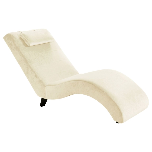 Extravagante Liege mit weichem Bezug. Die geschwunge Form der Liege lädt zum Relaxen ein. Unterstützt wird der Liegekomfort durch das Kissen im Kopfbereich, welches an der Rückseite angenäht ist. Die Füße sind zur einfachen Selbstmontage. ·65x163x84 in cm (BxTxH) ·Nettogewicht 18 kg ·Microfaser ·94% Polyester, 5% Nylon ·Sitzhärte fest ·Anzahl Sitze 2 ·Gurtunterfederung, Polyätherschaum, Diolenabdeckung ·Fußfarbe Buche schwarz lackiert; Kunststoff ·stabiles Holzgrundgestell aus Massivholz und Holzwerkstoffen ·Bodenfreiheit 3 / 15 cm ·Armteilhöhe innen vorn/hinten  cm ·Höhe ohne Füße 68 cm ·Rückenhöhe innen 54 cm ·Sitzbreite vorn/hinten65 cm ·Sitztiefe 98 cm ·Sitzhöhe 42 cm
