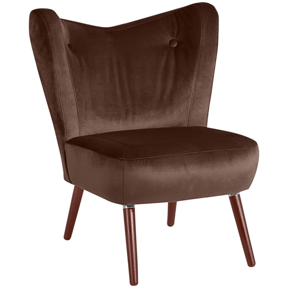 Formschöner Einzelsessel mit zwei Zierknöpfen im angesagten Retro-Stil. Das charakteristische Design in schlichter Retro-Optik macht diesen Sessel zu einem besonderen Blickfang. Die dunklen Buchefüße runden das Gesamtbild ab. Füße zur einfachen Selbstmontage. ·70x69x86 in cm (BxTxH) ·Nettogewicht 12 kg ·Samtvelours ·100% Polyester ·Sitzhärte mittel ·Anzahl Sitze 1 ·stabile Schichtholzplatte, Polyätherschaum, Diolenabdeckung ·Fußfarbe Buche nussbaum dunkel ·stabiles Holzgrundgestell aus Massivholz und Holzwerkstoffen ·Bodenfreiheit 24 cm ·Armteilhöhe innen vorn/hinten  cm ·Höhe ohne Füße 68 cm ·Rückenhöhe innen 41 cm ·Sitzbreite vorn/hinten53 cm ·Sitztiefe 50 cm ·Sitzhöhe 43 cm