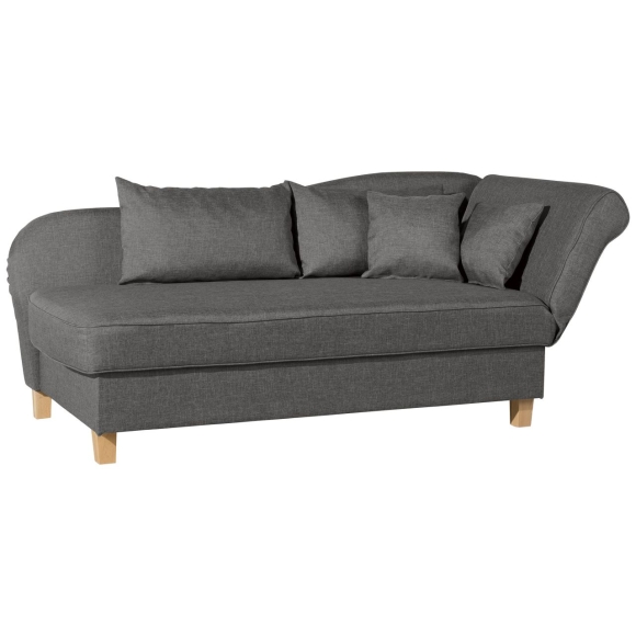 Klassische Recamiere mit praktischen Funktionen. Die Armlehne lässt sich in vier verschieden Postionen verstellen und bietet so eine Einzelliegefläche. Perfekt für ein kleines Nickerchen zwischendurch oder einen gelegentlichen Übernachtungsgast. Inklusive 2 rechteckigen Kissen und 2 Zierkissen. Ein großzügiger Bettkasten befindet sich unter der Sitzfläche. Hier lassen sich Bettdecken & Co. bequem verstauen. Die Füße sind zur einfachen Selbstmontage.·190 / 212x88x82 in cm (BxTxH)·Nettogewicht 62 kg·Flachgewebe·100% Polyester·Sitzhärte mittel·Anzahl Sitze 3 ·Wellenunterfederung, schaumummantelter Federkern mit Federkernabdeckung·Fußfarbe Buche natur·stabiles Holzgrundgestell aus Massivholz und Holzwerkstoffen·Bodenfreiheit 10 cm·Armteilhöhe innen vorn/hinten 34 cm·Höhe ohne Füße 68 cm·Rückenhöhe innen 37 / 26 cm·Sitzbreite vorn/hinten160 cm·Sitztiefe 70 cm·Sitzhöhe 46 cm Tags: Liege, Relaxliege, Recamiere,  Longchair, Schlafsofa