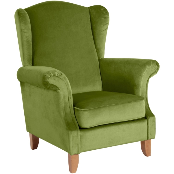Ein eleganter Ohrenbackensessel im klassischen Design. Die raffiniert geschwungenen Armlehnen machen ihn zu einem besonderen Blickfang. Das lose Sitzkissen, auf einem massiven Holzuntergestell, ist mittels Klettverschluss befestigt, somit rutscht es nicht weg. Die Füße sind zur einfachen Selbstmontage. ·88x84x108 in cm (BxTxH) ·Nettogewicht 30 kg ·Samtvelours ·100% Polyester ·Sitzhärte mittel ·Anzahl Sitze 1 ·Wellenunterfederung, Sitzkissen lose mit Klettverschluss befestigt ·Fußfarbe Buche natur ·stabiles Holzgrundgestell aus Massivholz und Holzwerkstoffen ·Bodenfreiheit 16 cm ·Armteilhöhe innen vorn/hinten 21 cm ·Höhe ohne Füße 68 cm ·Rückenhöhe innen 65 cm ·Sitzbreite vorn/hinten49 cm ·Sitztiefe 54 cm ·Sitzhöhe 49 cm