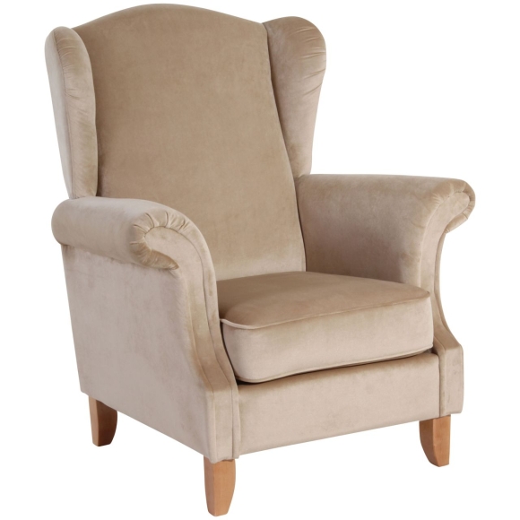 Ein eleganter Ohrenbackensessel im klassischen Design. Die raffiniert geschwungenen Armlehnen machen ihn zu einem besonderen Blickfang. Das lose Sitzkissen, auf einem massiven Holzuntergestell, ist mittels Klettverschluss befestigt, somit rutscht es nicht weg. Die Füße sind zur einfachen Selbstmontage. ·88x84x108 in cm (BxTxH) ·Nettogewicht 30 kg ·Samtvelours ·100% Polyester ·Sitzhärte mittel ·Anzahl Sitze 1 ·Wellenunterfederung, Sitzkissen lose mit Klettverschluss befestigt ·Fußfarbe Buche natur ·stabiles Holzgrundgestell aus Massivholz und Holzwerkstoffen ·Bodenfreiheit 16 cm ·Armteilhöhe innen vorn/hinten 21 cm ·Höhe ohne Füße 68 cm ·Rückenhöhe innen 65 cm ·Sitzbreite vorn/hinten49 cm ·Sitztiefe 54 cm ·Sitzhöhe 49 cm