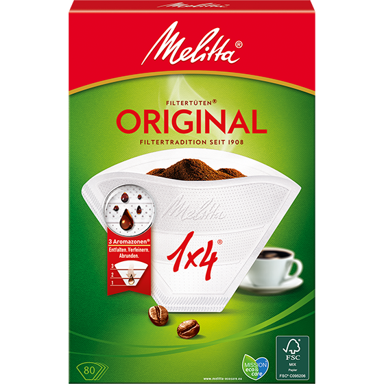Kaffee braucht Aroma! Die 3 Aromazonen® sorgen für optimale Entfaltung, Verfeinerung und Abrundung des Filterkaffee-Geschmacks. Filtertüten® Original 1x4® passen dabei perfekt in zahlreiche handelsübliche Kaffeemaschinen.