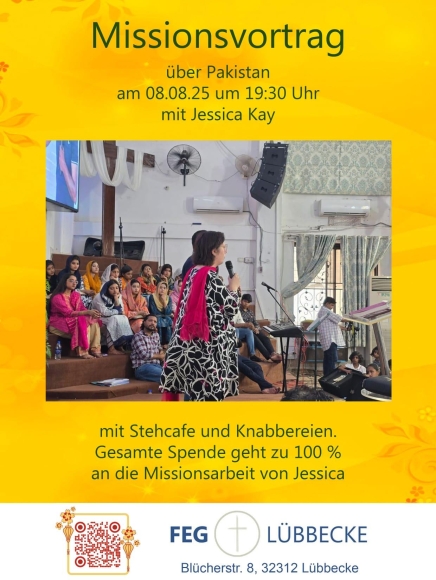 Jessi wird von ihrer letzten Reise nach Pakistan erzählen. In einer Zeit mit Krieg, Trockenheit und gesundheitlichen Problemen. Seit gespannt.