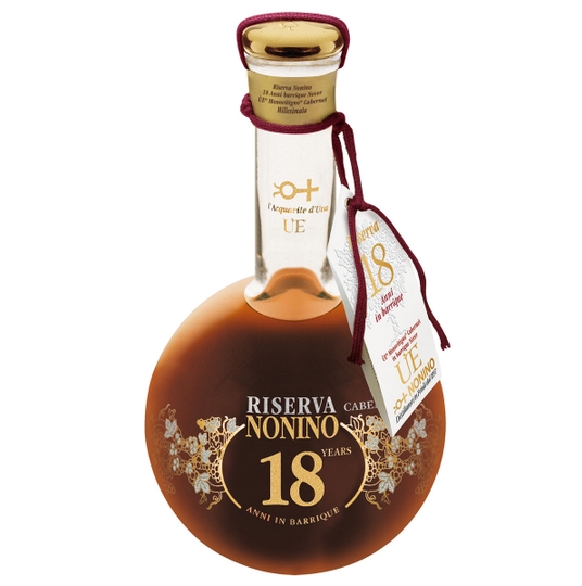 Grundlage für diesen kraftvollen »Ùe Riserva Cabernet 18 Jahre« aus dem Traditionshaus Nonino sind Cabernet Cru-Trauben aus der Weinlese 1997 aus dem Collio. In exklusiven Kupfer-Dampfbrennkolben langsam destilliert, reifte der Brand 18 Jahre lang natürlich in der Barrique Nr. 60 aus Nevers-Eiche. Der Grappa leuchtet wunderbar bernsteinfarben, klar und samtig im Glas. Er duftet einnehmend nach Aprikose, Apfel und leichter Konfitüre, die sich mit Vanille, Mandel, Trockenobst und Schokolade verbindet. Dazu kommt ein einnehmend würziger Geschmack, mit leichter Note von aromatischem Holz, lang anhaltend. Am besten schmeckt der sortenreine Brand im großen Ballonglas, bei Zimmertemperatur, wo er einige Minuten ruhen darf, bevor er seinen vollen Duft- und Geschmacksreichtum entfaltet hat. Der »Cabernet Cru« wurde manuell in mundgeblasene Dekanter aus Glas (378 Flaschen insgesamt), mit Jahrgangsangabe und nummeriert, abgefüllt - der Verschluss der Flasche hat einen 24 Karat-Goldüberzug.