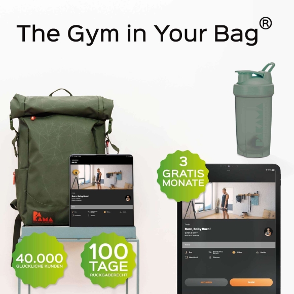 Was Du Alles mit XXL bekommst. 3 PAKAMA Resistance Bands. 3 PAKAMA Mini Bands. 2 PAKAMA Fußschlaufen. 2 PAKAMA Griffe. 2 PAKAMA Slides. 1 PAKAMA Bar. 1 PAKAMA Speed Sprungseil. 1 PAKAMA Sling Trainer. 1 PAKAMA Tür Anker. 1 PAKAMA Faszien Ball. 1 PAKAMA Faltbare Matte. +++++ XXL Vorteil +++++. 3 Monate Premium Zugang PAKAMA Trainings-App. inkl. unserem, schönen PAKAMA Shaker