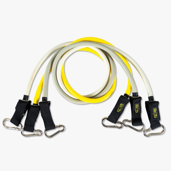 3 High Quality Heavy Resistance Bands in den Stärken:. 14 kg  (~ 30 lbs). 16 kg  (~ 35 lbs). 18 kg  (~ 40 lbs). Benutze 2 oder sogar alle 3 Bänder gleichzeitig für noch mehr Widerstand. Und ja, wir haben die Zahlen der Widerstände schön gerundet, damit es einfach einfacher ist:). Kombiniere die Resistance Bands mit unserer geraden Bar und der neuen SZ Bar! Kniebeugen und echt schwere Deadlifts werden damit möglich, auch ohne im Fitnessstudio zu sein. Als sportliche Style-Liebhaber haben unsere neuen Resistance Bands auch wieder ein optisches Highlight: das stärkste Band ist in Signalfarbe. Schau Dir hier die noch stärkeren Extreme Bands an - unsere WELTNEUHEIT!. Mit allen 3 Resistance Bands zusammen an der SZ Bar entspricht das bei Deadlifts (gerne auch “Kreuzheben” genannt) ungefähr:. PAKAMA Resistance Bands: 80 - 100 kg. PAKAMA Heavy Bands: 100 - 120 kg. PAKAMA Extreme Bands: 120 - 140 kg. Worauf wartest Du noch? Das ist Deine Möglichkeit, wann und wo auch immer Du willst zu trainieren, genau so, als wenn Du in einem Fitnessstudio wärst.