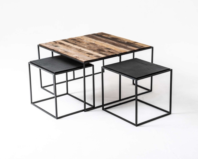 Wenn du ein ausgefallenes Möbelstück für deinen Wohn- der Essbereich suchst bist du bei unserer Rustika Kollektion des Herstellers Nova Solo goldrichtig. Modernes und einzigartiges Design trifft auf Nachhaltigkeit. Jedes Möbelstück aus dieser Serie wurde nämlich aus rustikalem alten Bootsholz gefertigt und verleiht jedem Zuhause eine besondere Note. Insbesondere das Couchtisch Set Rustika wird zum absoluten Hingucker in deinem Wohnzimmer. Die Verwendung von natürlichem und schwarzem Holz in Kombination mit der Basis aus Metall sorgen für eine spannende Optik und bieten zudem noch viel Ablagefläche und Stellmöglichkeiten. Ob nur als Couchtisch oder auch als zusätzlichen Beistelltisch neben dem Sofa der Kreativität sind keine Grenzen gesetzt.