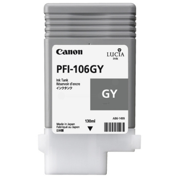 Canon 6630B001 - PFI-106 GY Tintenpatrone grau, Inhalt 130 ml für Imageprograf IPF 6300/6300 S/6350/6400/6450