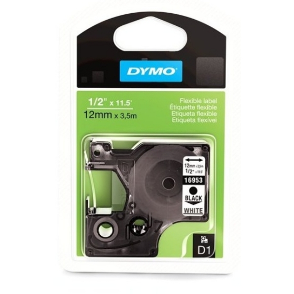 Dymo 16957 - S0718040 DirectLabel-Etiketten Nylonband schwarz auf weiss 12mm x 3,5m für Dymo D1 6-12mm/6-19mm/6-24mm/400 Duo