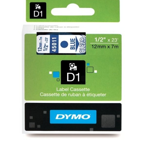 Dymo 45011 - S0720510 DirectLabel-Etiketten blau auf Transparent 12mm x 7m für Dymo D1 6-12mm/19mm/24mm/9-12mm/9-19mm