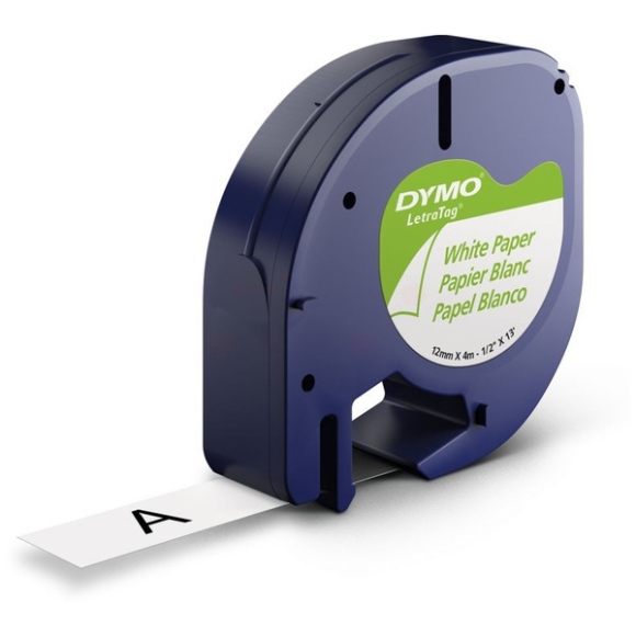 Dymo 91220 - S0721520 DirectLabel-Etiketten Papier weiss 12mm x 4m für Letratag/Letratag LT 100 H/T/QX 50/XM/XR/2000