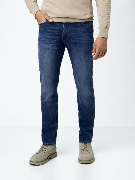 Die Paddock's Duke Regular Fit in der Farbe medium blue ist die perfekte Ergänzung für deinen Kleiderschrank. Diese Jeans verkörpert eine gelungene Kombination aus zeitlosem Design und modernem Anspruch. Das Modell Duke besteht aus einem hochwertigen Materialmix: 94% Baumwolle, 5% Elastomultiester und 1% Elasthan. Diese Mischung garantiert eine optimale Bewegungsfreiheit, sodass du den ganzen Tag über einen angenehmen Tragekomfort hast. Die einfarbige blaue Jeans ist mit einem dezenten Used Look versehen, der ihr eine leichte, lässige Note verleiht. Die Regular Fit Passform und der gerade Schnitt an den Beinen setzen deine sportliche Silhouette gekonnt in Szene. Der 5-Pocket-Style ist nicht nur praktisch, sondern auch ästhetisch ansprechend und in den zwei Seitentaschen und den beiden Gesäßtaschen hast du genügend Platz für all deine wichtigsten Utensilien. Die Gürtelschlaufen ermöglichen dir, deine Lieblingsgürtel zu tragen und deinen individuellen Look zu betonen. Die Gesäßtasche mit dunkelblauen Ziernähten verleiht der Jeans einen edlen Touch. Ein Lederpatch am Bund und ein kleines Metall-Logo auf der rechten Gesäßtasche und an der Geldtasche unterstreichen die hochwertige Verarbeitung und das Markenbewusstsein. Erhältlich ist die blaue Jeans von Paddock's in den Längen 38 und 40.Egal, ob du die Paddock's Jeans zu einem legeren Freizeitoutfit oder zu einem angesagten Abendlook kombinierst, das Modell Duke ist die ideale Wahl. Getragen mit einem modischen Herren Shirt hast du einen tollen Look für deinen Alltag. Zu einer schickeren Feier oder das Treffen mit Freunden kombinierst du ein elegantes Herren Hemd oder ein Herren Poloshirt zu der Duke Jeans von Paddock's.