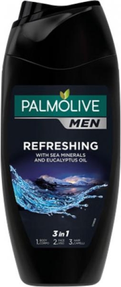 Palmolive MEN Refreshing Eukalyptus Essential Oil & Sea Salt Extract 3in1, Duschgel für Körper, Gesicht & Haar, 250ml (7,96 EUR / l)