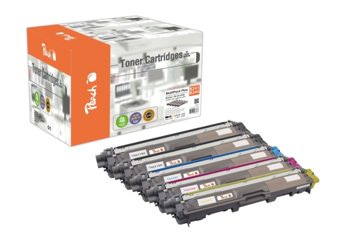 Peach Spar Packs - Sparen Sie zusätzlich gegenüber dem Einzelkauf!5 Tonermodule.2 x Peach Tonermodul schwarz kompatibel zu Brother TN-241BK1 x Peach Tonermodul cyan kompatibel zu Brother TN-245C1 x Peach Tonermodul magenta kompatibel zu Brother TN-245M1 x Peach Tonermodul gelb kompatibel zu Brother TN-245YTonermodule von Peach garantieren langfristig einwandfreie Ausdrucke ohne Qualitätsverlust. Es handelt sich um wiederaufbereitete Produkte, wobei alle Verschleissteile vollständig ausgetauscht werden. Qualität die Sie spüren!