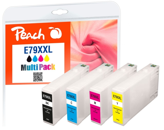 Peach Spar Packs - Sparen Sie zusätzlich gegenüber dem Einzelkauf!4 Tintenpatronen.1.00 x Peach Tintenpatrone XXL magenta kompatibel zu Epson No. 79XXL m, C13T789340101.00 x Peach Tintenpatrone XXL cyan kompatibel zu Epson No. 79XXL c, C13T789240101.00 x Peach Tintenpatrone XXL schwarz kompatibel zu Epson No. 79XXL bk, C13T789140101.00 x Peach Tintenpatrone XXL gelb kompatibel zu Epson No. 79XXL y, C13T78944010Peach ist eine führende Schweizer Marke für kompatible Tintenpatronen. Spitzentechnologie gewährleistet höchste Qualität und führt zu herrvoragenden Ergebnissen. Farb- und Lichtechtheit entsprechen höchsten Anforderungen und gewährleisten brillante Druckresultate. Um die Premium Qualität sicherzustellen, wird die Tinte im eigenen Entwicklungszentrum in der Schweiz entwickelt und anschliessend in unseren Fertigungsstandorten in die Tintenpatronen abgefüllt. Produktion und Fertigung entsprechen neusten Erkenntnissen aus Lehre und Forschung. Qualität, mit der asiatische Hersteller nicht gleichziehen können und dies zu immer noch sehr attraktiven Preisen. Eine echte Alternative zu teuren Original Produkten oder Billigsttinten.